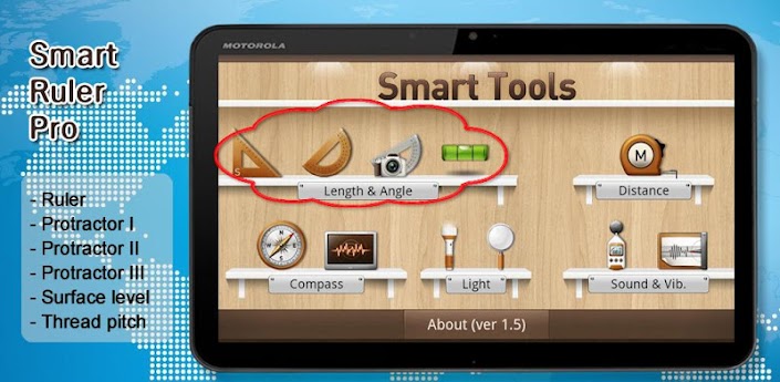 Overview:Â Measure length, angle, slope, level and thread with your phone. Smart Ruler Pro is the 1st set of Smart Tools collection (ruler, protractors1-3, level, thread).